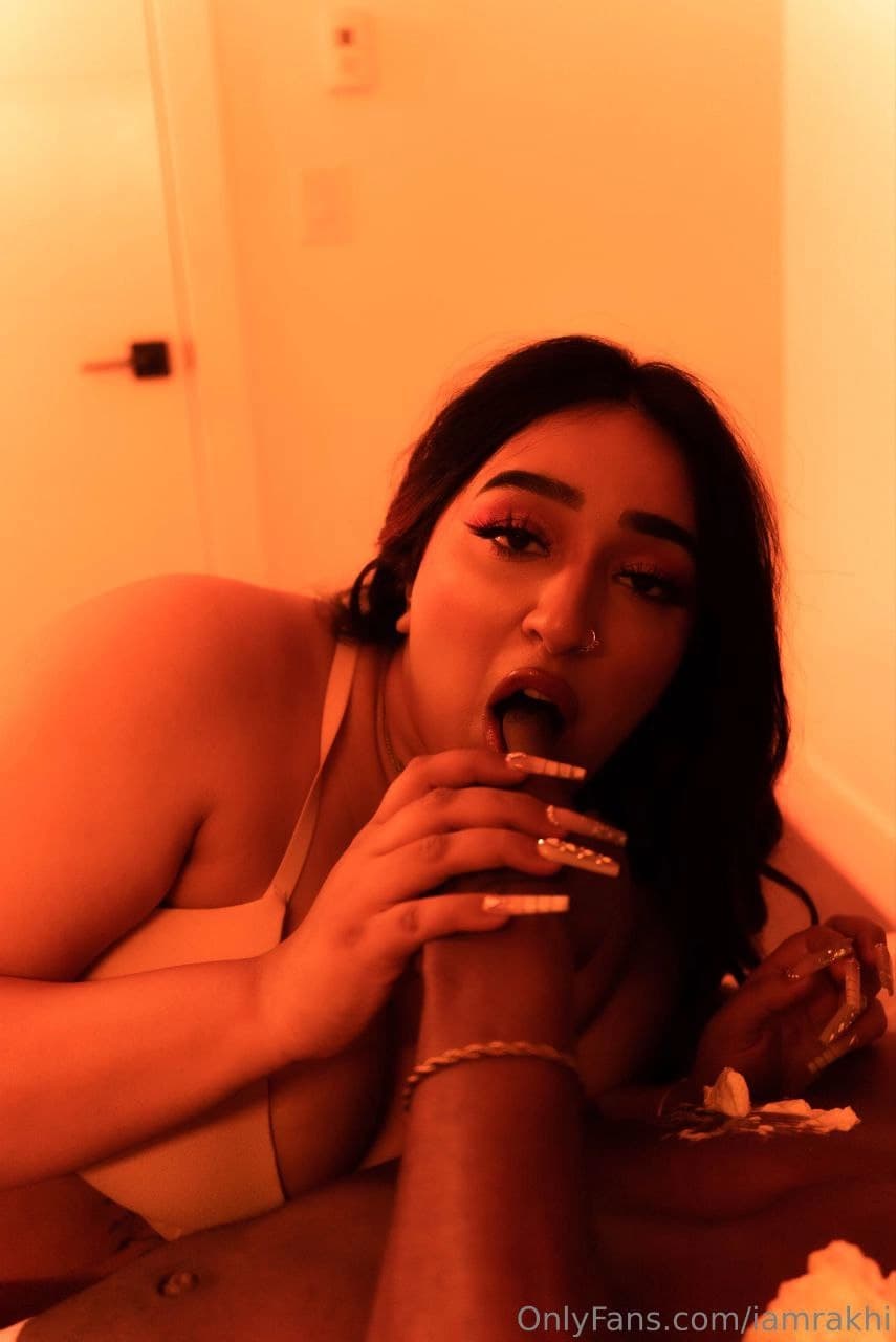The desi influencer Rakhi Gill is supposed to be doing a fierce couple photoshoot, but things get out of hand. Her sheer white outfit can barely contain her massive boobs, and her thick ass is on full display in a tiny black two-piece. The girl strikes doggy style poses, arching her back to show off that juicy ass. She even licks her fingers like a dirty slut, teasing the camera. Her partner can’t keep his hands off her, grabbing her tits and squeezing them hard as they get hornier and hornier for the lens.